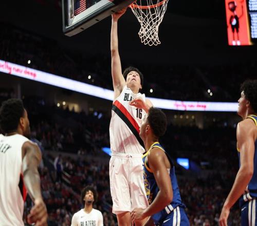 杨瀚森之后还送出两记大帽,也是帮助开拓者大胜勇士,终于获得NBA生涯首胜。
