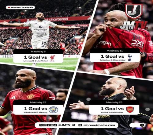 去年夏天, 曼联花费7500万欧元引进姆伯莫。他虽因非洲杯缺席了多场比赛,但在18次英超出场中交出了8球1助的数据。据统计,姆伯莫成为了自2022-23赛季的拉什福德以来,曼联首位在英超单赛季面对阿森纳、曼城以及利物浦全都取得进球的球员。此外,他还是自2012-13赛季的范佩西以来,曼联首位在加盟球队的首个赛季就能够在英超联赛中连续攻破阿森纳、曼城以及利物浦球门的球员。