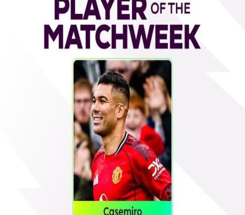 传射建功,卡塞米罗当选英超第24轮最佳球员